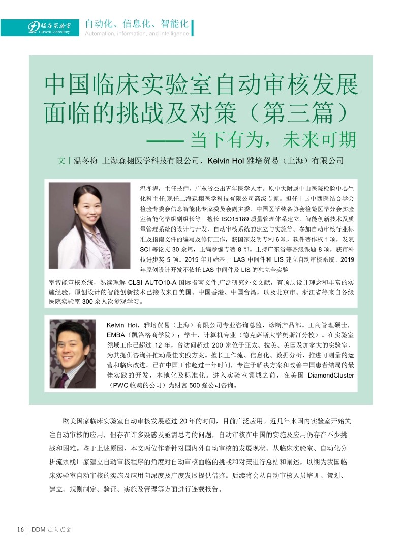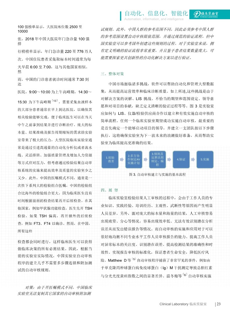 隨著臨床實驗室信息化自動化的迅速進展,計算機自動審核逐漸受到重視,國外實驗室自動審核的使用率較高,但國內(nèi)近幾年才開始發(fā)展使用,如何設(shè)置規(guī)范、全面、周全的自動審核規(guī)則?以何為載體設(shè)置?如何驗證?如何管理?已成為許多擬開展自動審核工作的實驗室迷惑及亟需掌握的共同問題。該報告主要針對AUTO-10A 指南進行詳細解讀解析、結(jié)合指南發(fā)表后國內(nèi)外不同專業(yè)領(lǐng)域自動審核的研究進展進行闡述和介紹,提出重要見解,為臨床實驗室開展自動審核工作提供借鑒和幫助。