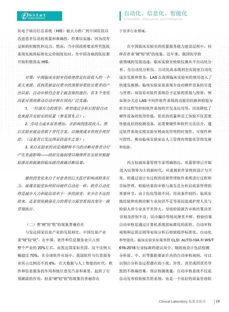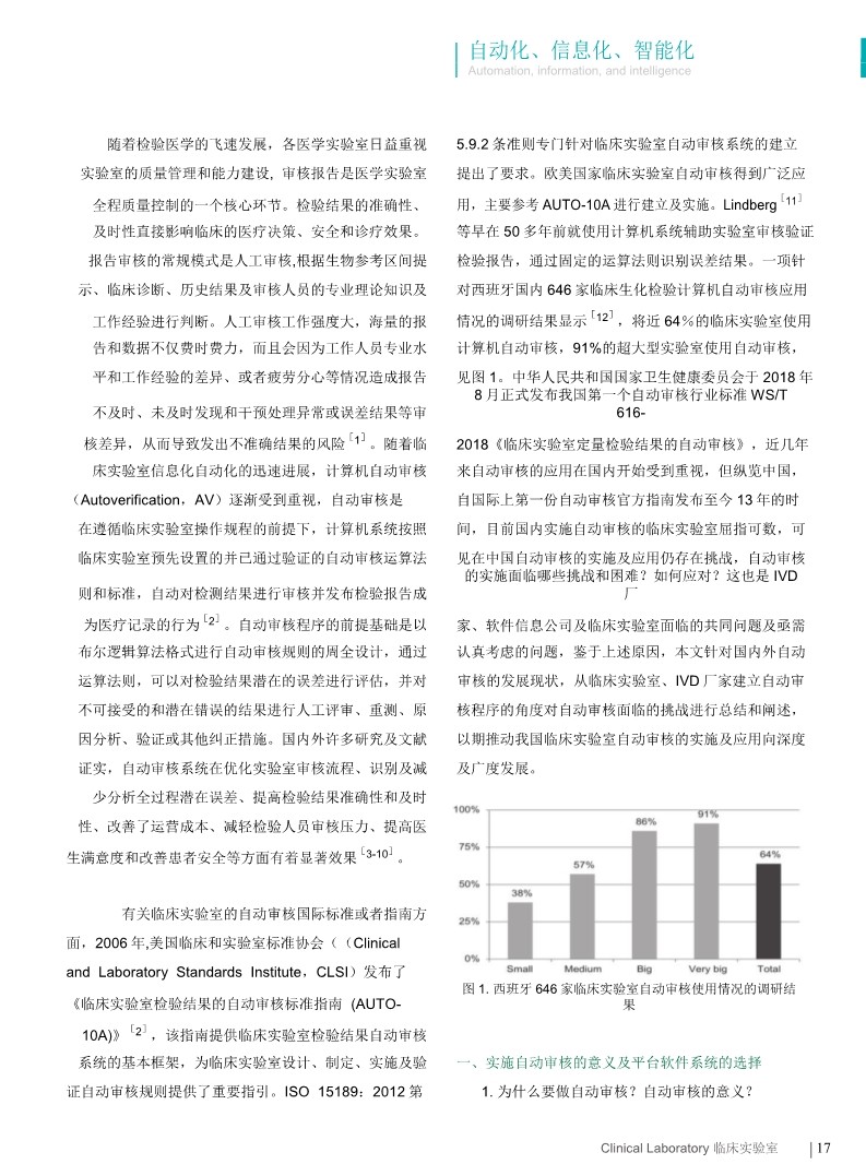 隨著臨床實驗室信息化自動化的迅速進展,計算機自動審核逐漸受到重視,國外實驗室自動審核的使用率較高,但國內(nèi)近幾年才開始發(fā)展使用,如何設置規(guī)范、全面、周全的自動審核規(guī)則?以何為載體設置?如何驗證?如何管理?已成為許多擬開展自動審核工作的實驗室迷惑及亟需掌握的共同問題。該報告主要針對AUTO-10A 指南進行詳細解讀解析、結(jié)合指南發(fā)表后國內(nèi)外不同專業(yè)領域自動審核的研究進展進行闡述和介紹,提出重要見解,為臨床實驗室開展自動審核工作提供借鑒和幫助。