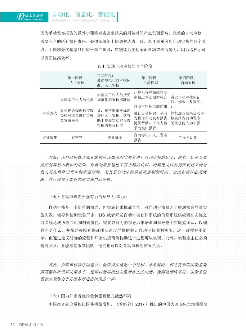 隨著臨床實驗室信息化自動化的迅速進(jìn)展,計算機(jī)自動審核逐漸受到重視,國外實驗室自動審核的使用率較高,但國內(nèi)近幾年才開始發(fā)展使用,如何設(shè)置規(guī)范、全面、周全的自動審核規(guī)則?以何為載體設(shè)置?如何驗證?如何管理?已成為許多擬開展自動審核工作的實驗室迷惑及亟需掌握的共同問題。該報告主要針對AUTO-10A 指南進(jìn)行詳細(xì)解讀解析、結(jié)合指南發(fā)表后國內(nèi)外不同專業(yè)領(lǐng)域自動審核的研究進(jìn)展進(jìn)行闡述和介紹,提出重要見解,為臨床實驗室開展自動審核工作提供借鑒和幫助。