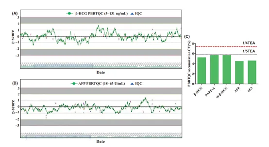 唐氏綜合征(DS),也稱為21三體綜合征,是活產(chǎn)嬰兒中最常見的染色體非整倍體疾病,全球范圍內(nèi)其出生發(fā)病率約為八百分之一,且目前尚無有效治療方法。因此,產(chǎn)前血清篩查成為檢測唐氏綜合征胎兒的重要手段。室內(nèi)質(zhì)控是最常見的質(zhì)量控制工具, 用于監(jiān)測常規(guī)實驗的性能。 然而,傳統(tǒng)的室內(nèi)質(zhì)控方法在監(jiān)測分析質(zhì)量方面存在諸多局限性,如基質(zhì)效應(yīng)、非互換性、穩(wěn)定性差、檢測范圍不適當以及質(zhì)量監(jiān)測不連續(xù)等,這可能導(dǎo)致誤報或無法快速檢測到真正的警報,最終影響檢測結(jié)果的準確性。