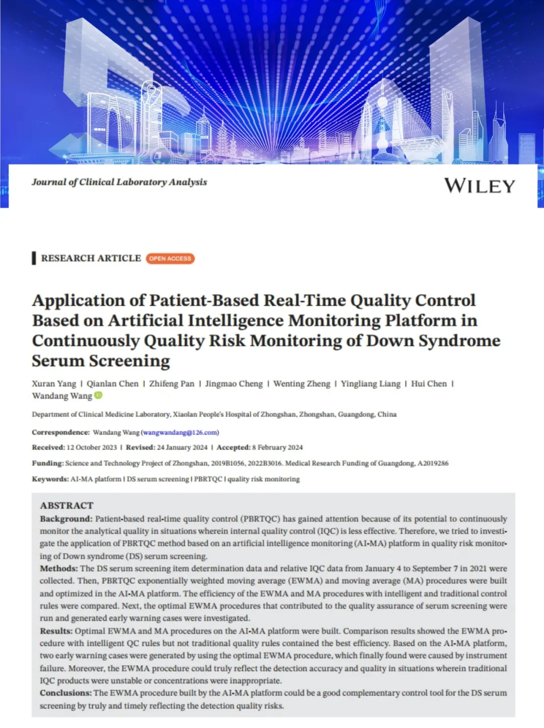 全球首次報道|AI-PBRTQC實現(xiàn)唐篩檢測智能實時質(zhì)控